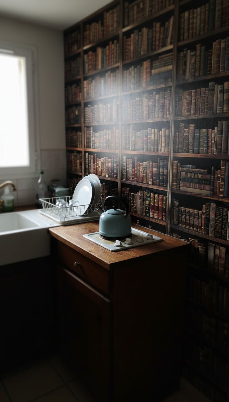 Installer le Papier Peint Bibliothèque En Trompe L’œil transforme instantanément une pièce, ajoutant une touche de sophistication et de charme littéraire. Il enrichit l'atmosphère de l'espace, rendant le lieu plus accueillant et stimulant pour les conversations intellectuelles.