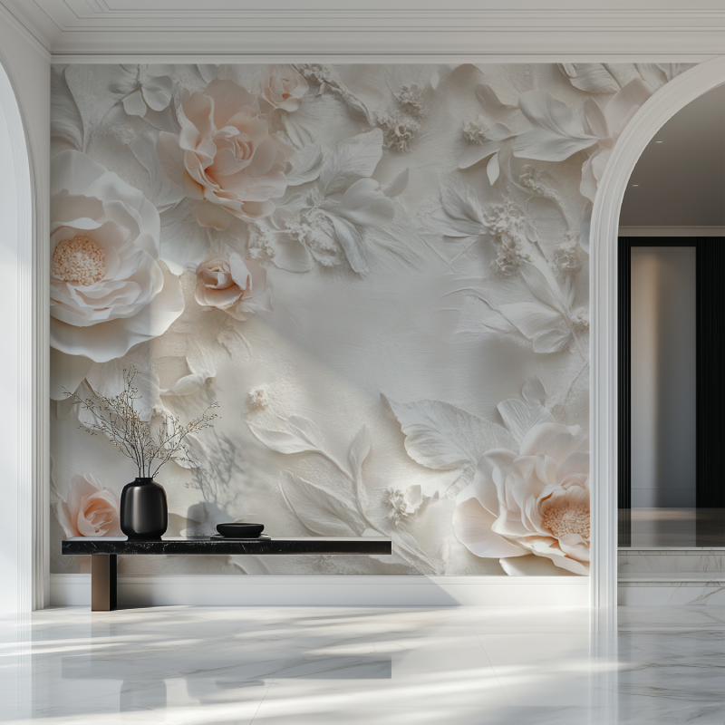 Le design unique du Papier Peint Fleur 3D capte l'œil grâce à ses motifs floraux saisissants qui semblent jaillir du mur. Les nuances délicates de beige et de blanc créent une atmosphère douce et apaisante, idéale pour les espaces exigeant une touche de sophistication.