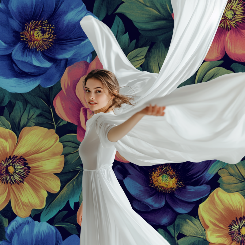 Les fleurs généreuses, de style vintage, rappellent l'énergie et la liberté créative des années 80. Ce motif floral captivant éveille la nostalgie tout en restant en harmonie avec les tendances modernes, idéal pour tout espace qui nécessite une touche de fraîcheur et de personnalité.