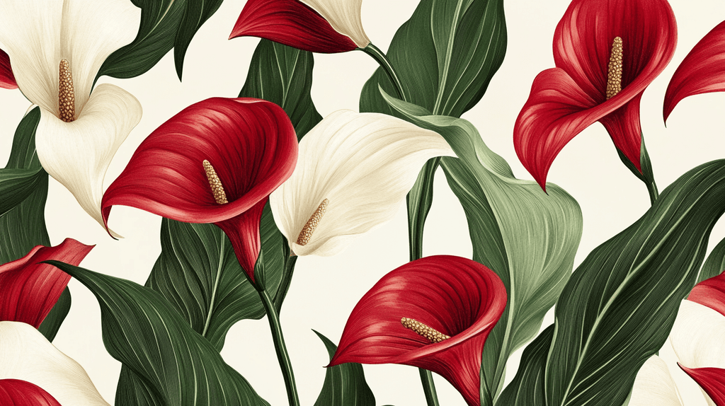 Le Papier Peint Fleur Calla Rouge exhibe un design unique avec des fleurs de calla aux teintes rouges vibrantes et crémeuses, entourées de feuilles vertes luxuriantes. Ce motif floral intemporel apporte une élégance naturelle qui s'harmonise parfaitement avec des intérieurs modernes et classiques.