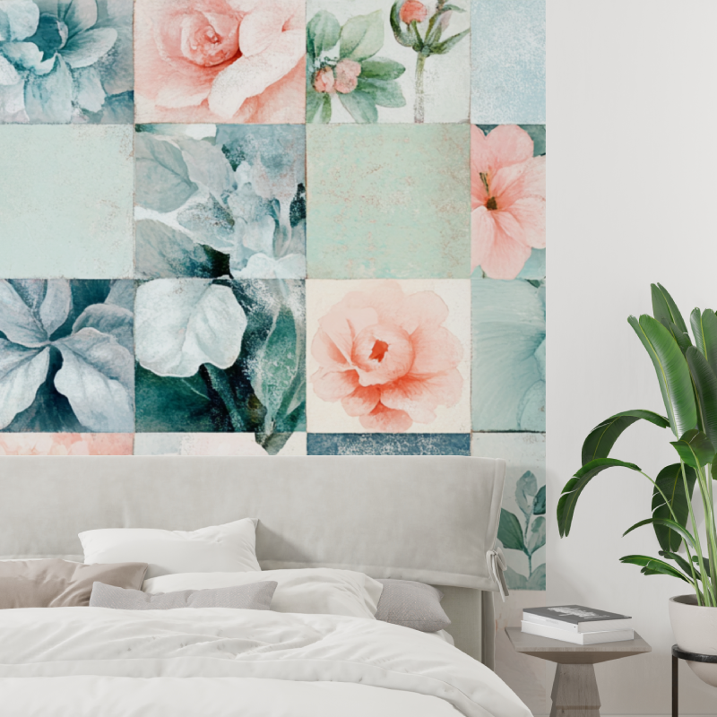 Papier Peint Fleur Carreaux À Coller