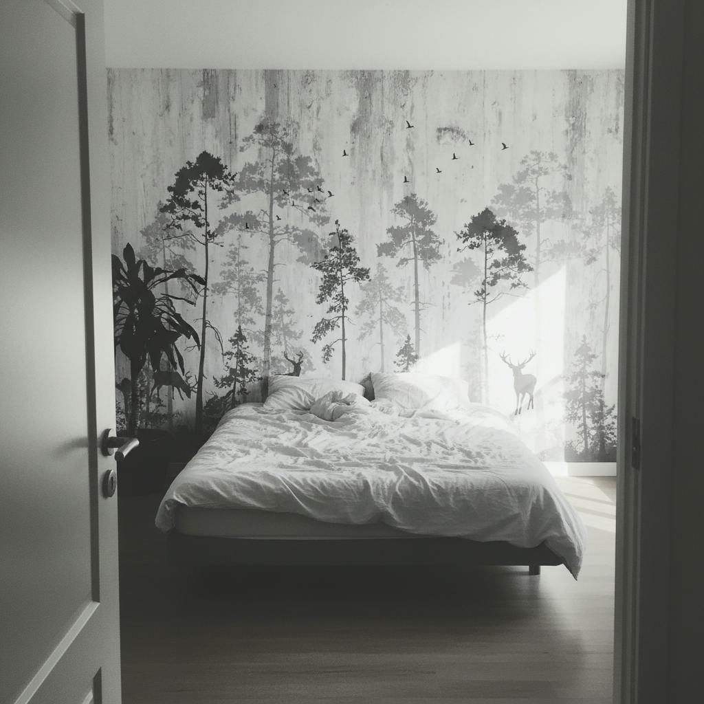 Plongez vous dans une nature esthétique avec ce papier peint effet noir et blanc