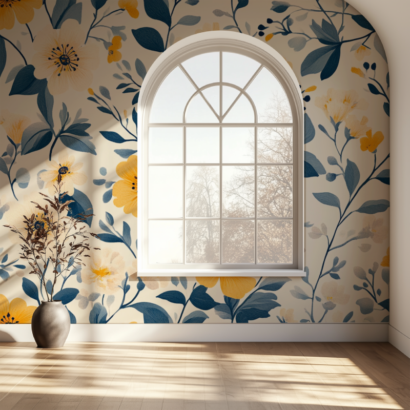 Le Papier Peint Scandinave Vintage Fleurs se distingue par son motif floral délicat et sophistiqué. Les fleurs jaunes et bleues éveillent les sens tout en créant une atmosphère paisible et accueillante.
