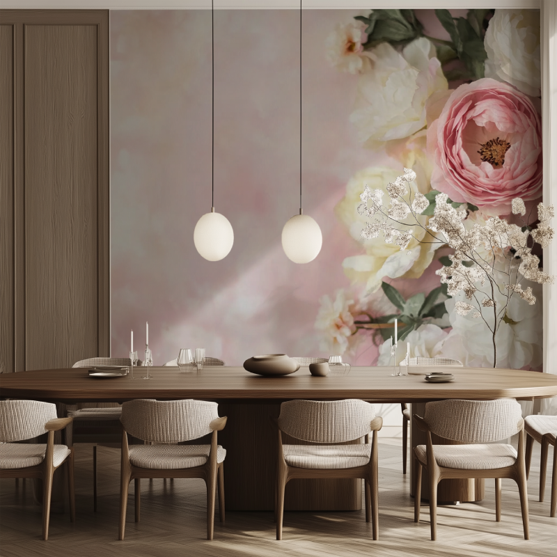 Le Papier Peint Vintage Fleuri présente un design captivant avec son motif floral délicat et son mélange harmonieux de couleurs pastel. Les fleurs aux teintes roses et blanches sont magnifiquement agencées, créant un effet visuel apaisant et romantique.