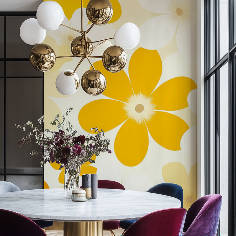 Comment le Papier Peint Vintage Jaune Fleurs transforme-t-il l'espace ?